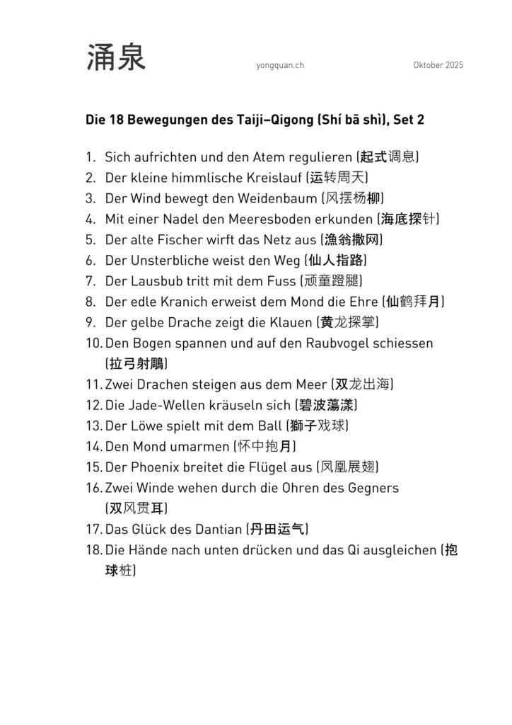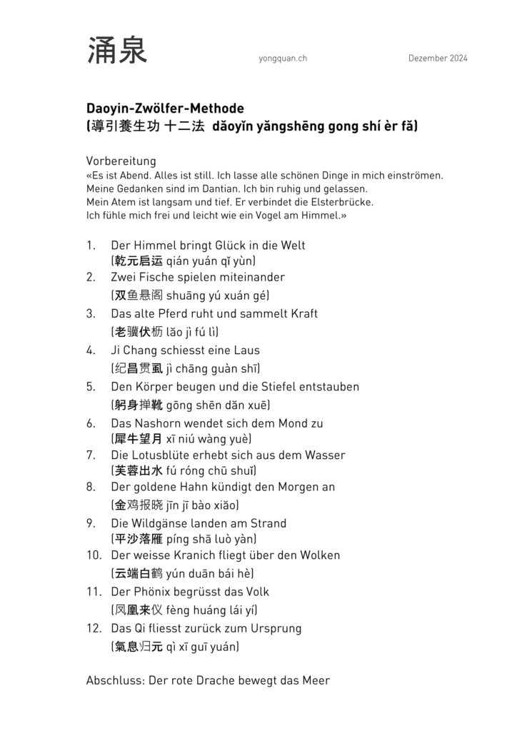 Übungsreihe Shi-Er-Fa: Einleitung und Bezeichnung der einzelnen Übungen. Dokument als PDF